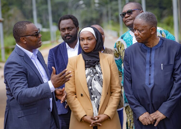 Le ministre des Transports, postes et TIC de la Guinée Equatoriale Honorato Evita Homa fait visiter les infrastructures d’interconnexion routières entre son pays, le Cameroun et le Gabon à ses homologues du Tchad et du Congo le 29 mai 2023 à Kye-ossi.