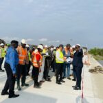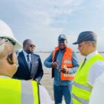 Pour la stabilité de l’ensemble de la surface, les dalles de béton armé sont reliés, entre elles, par des goujons en acier inoxydable, permettant une meilleure répartition des charges et leur transmission parfaite à la base compactée de 1,2 m d’épaisseur. Ils peuvent encaisser des charges allant de 5 à 7 tonnes par m2. Une belle prouesse dont Cyrus Ngo’o découvre les finitions avec une grande satisfaction.